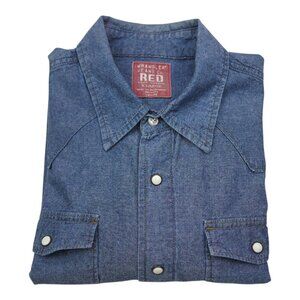 Mens Wrangler Jeans Co. Red Long Sleeve Denim Pearl Snap Shirt XL