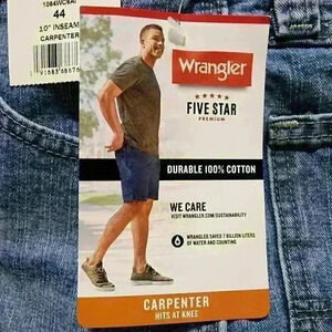 Mens Wrangler Premium Relaxed Fit Carpenter Denim Shorts Size 44, 46 Medium Wash