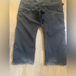Wrangler RIGGS Workwear Jeans Size 46x30 Color- black Please see pictures for condition- signs of wear ( fraying and small hole on bottom of leg)