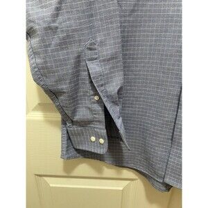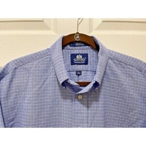 Mens Wrinkle Free Oxford Button Down Shirt 16 34/35 Stafford Check Blue USA