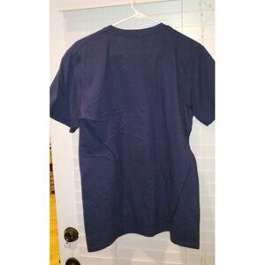RIC FLAIR shirt new without tags...THERE IS A SMALL PIN HOLE AT COLLAR WHERE SECURITY TAG WAS REMOVED AND IS PICTURED. the 2 reddish pics are without flash but shirt is definitely blue