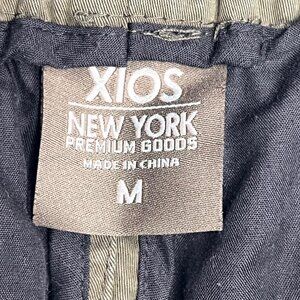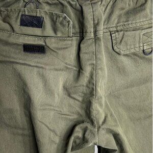 Xios olive green joggers with elastic waist. Pockets. Drawstring at waist. Stretchy. Not lined.