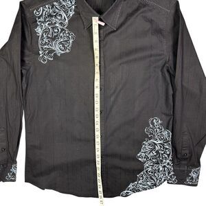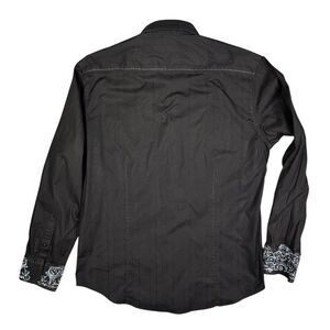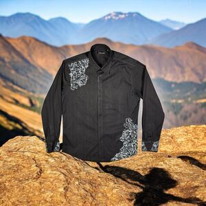 Men’s XL 7 Diamonds Y2K Era Black Long Sleeve Button-up Shirt With Accent Print