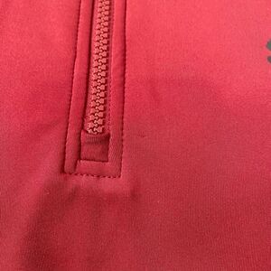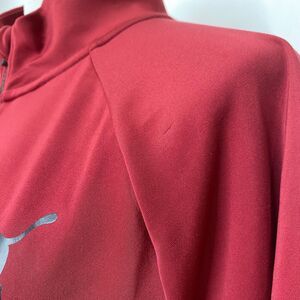 Mens XL Athletic Shirt Puma Red Quarter Zip Heavyweight Long Sleeve High Neck. Very clean and well-kept condition. No major damage or stains that we saw at all. May have Some light wear from use and storage but still in good condition. Does have one small pull on the shoulder as shown in the photo.