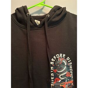 Men's XL Black Pullover Hoodie Death Before Dishonor Graphic Anime JDM