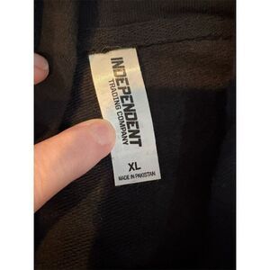 The Independent Trading Company men's black hoodie is a pullover style with a graphic print featuring themes of JDM and Anime, including characters like a dragon and a car. Made from a cotton and polyester fleece blend, it offers a regular fit with long sleeves and a crew neck, suitable for fall. Manufactured in Pakistan, this hoodie is machine washable and ideal for casual outings or relaxed gatherings. It is pre-owned with normal wear.