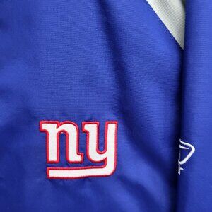 Embrace the spirit of the game with the Men's XL New York Giants NFL Reebok In Field Jacket. Designed for the dedicated NFL fan, this blue and gray windbreaker is a stylish way to show your support for the New York Giants during the regular season. The jacket features the iconic NYG logo, ensuring you stand out in the crowd while cheering on your team. Crafted for both comfort and durability, this jacket hails from Vietnam and is a size XL, fitting true to size for a relaxed, yet tailored look. Whether you're at the stadium or out and about, this officially licensed NFL product combines function with fandom, making it a must-have for any hardcore football enthusiast.