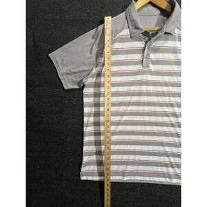 Mens XL Gray White Red Stripe Short Sleeve Golf Polo Shirt Polyester