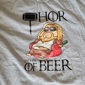 Men's XL Marvel Thor Father of Beer Graphic Tee Shirt Gray