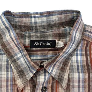Men's XL St Croix Long Sleeve Button Up Shirt Check Brown Green in very good pre-owned condition.