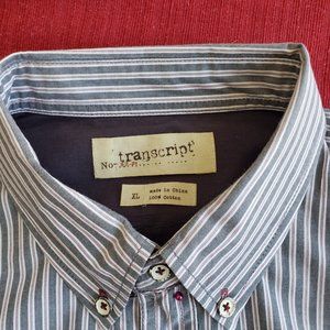 Men's XL Transcript long-sleeved button down casual shirt - grey striped cotton