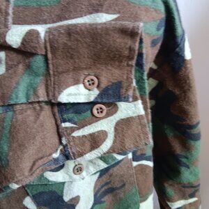 This vintage camouflage shirt combines practicality with classic style. Featuring a button-up design, it's suitable for outdoor activities or casual wear.