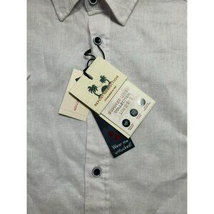 Men's XL White Linen Short-Sleeve Shirt By Report Collection Summer Linen Colle