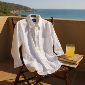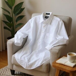 Men's XL White Striped Long Sleeve Button-Up Dress Shirt by Croft & Barrow