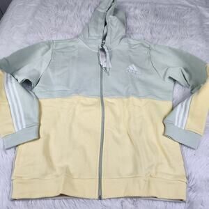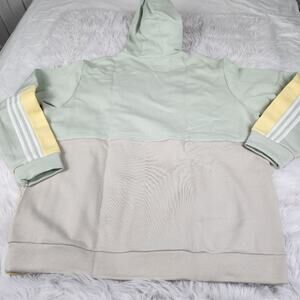 Men's XL adidas Colorblock Full-Zip Hoodie in Linen Green/Alumina/Almost Yellow. New With Tags. Zip up and coast through your busy life with this men's hoodie from adidas. Colorblock design. Hood with adjustable drawstring. 2 front open hand pockets. Full-zip closure. Long sleeves. FIT & SIZING: Relaxed fit.