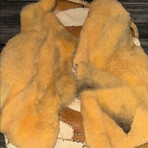 Stay warm and stylish with this luxurious shearling jacket. Featuring a beautiful blend of tan and cream colors, this jacket is perfect for any occasion. Experience comfort and elegance in one piece. Estate sale find , will need to be cleaned