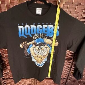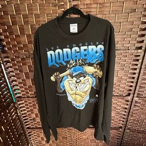 New Without Tags Black long sleeve Shaka Heavyweight shirt featuring Taz and Los Angeles Dodgers graphic in blue and white.