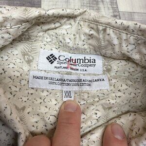 This lot includes five Columbia men's short sleeve button-up shirts, all in size XXL. Crafted from 100% cotton, these shirts feature fishing-themed designs, ideal for outdoor and casual wear.