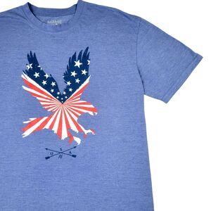 Mens XXL "HOME OF THE BRAVE" Blue Patriotic Soft Cotton Blend Short Sleeve Shirt