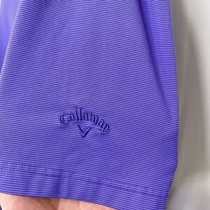 Mens XXL Polo Shirt Callaway Opti-Dri Purple Striped Short Sleeve Athletic. Very clean and well-kept condition. No major damage or stains that we saw at all. May have Some light wear from use and storage but still in good condition.