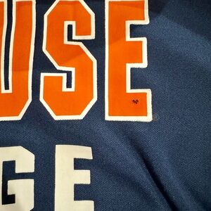 Men’s Syracuse Orange Pullover Hoodie is Size XXL and is practically brand new. It was worn once and has a ding in the letter E which came that way. This has a long life ahead of it. Please ask for any additional information or pictures.