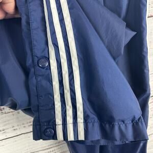 Mens Y2K Adidas Navy White Stripe Nylon Track Pants Break Away Snap Button Sz L