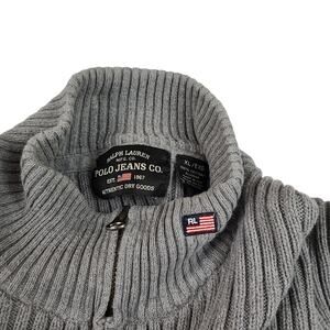 Mens Y2K Polo Ralph Lauren Sweater XL Ribbed Quarter Zip Gray