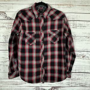 Mens Y2K Tony Hawk Red Black Plaid Snap Up Shirt Skater Grunge Cotton Work L