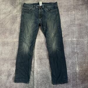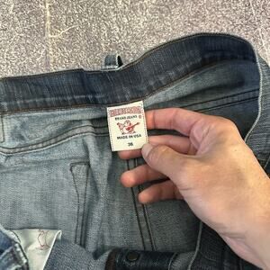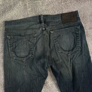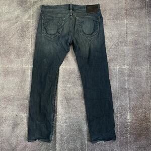 Men's Y2K True Religion USA Dark Blue Slim Straight Faded Denim Jeans Sz 36 X 32