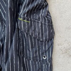 Mens Y2K Volcom cargo style swim trunks black striped size 32