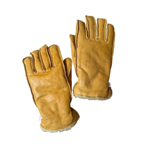 Mens Yellow Leather Gloves Lined Made In Canada M