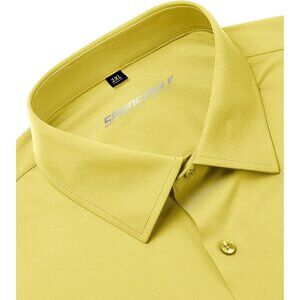 Men's Yellow Long Sleeve Slim Muscle Fit Wrinkle Free Button Down Dress Shirts