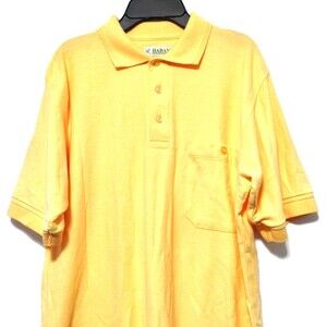 This men's yellow polo shirt in size medium features a short sleeve button collar, making it perfect for casual, travel, or workwear occasions. Made from breathable polyester knit fabric, this classic polo shirt is ideal for summer, fall, or spring seasons. With a solid pattern and regular fit, it offers a comfortable and stylish option for everyday wear or golfing activities. Easy to care for with machine washable instructions, this polo shirt by Haband is a versatile and timeless addition to any man's wardrobe.