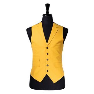 Mens Yellow Vest 40R Cotton Waistcoat Formal Wedding Prom Party Suit Groomsmen