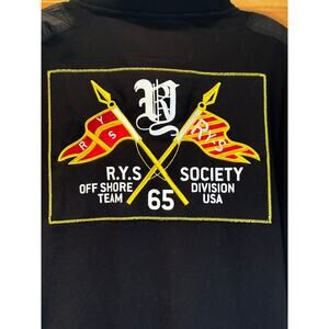 Color - Black sweatshirt with red, white, blue, yellow embroidery