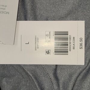 New and never worn. Gray lightweight crew neck tee short. Short sleeve. By Zelos. Moisture wicking fabric. Stretch. Perfect light layer for cool/cold weather outdoor activities. Size Large.