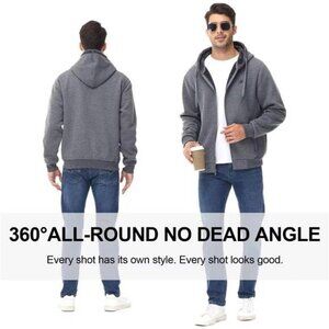 Men's Zip Up Hoodie Heavyweight Fleece Sherpa Lined Sweatshirt Jackets Winter