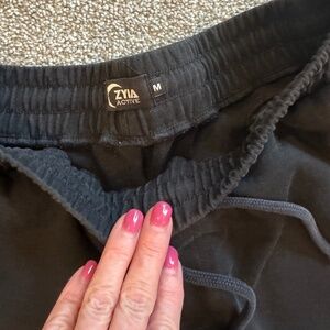 Men's Zyia Fleet Shorts, Size M, EUC Black with 6" inseam. Elastic waist 19", drawstring closure and side pockets.