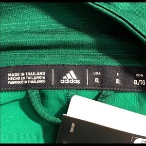 ************PS: The ADIDAS LOGO on the picture is actually on the right sleeve. So the front is plain only with the OHIO logo. ******************    Size: XL    Details: Material: 100% Polyester climalite ® technology conducts sweat and heat away from the body Flatlock stitching Droptail Embroidered graphics Sublimated tonal stripe pattern Heat-sealed jock tag in interior back of neck Three-button placket Short sleeve Machine wash, tumble dry low Tagless Collar Officially licensed Imported