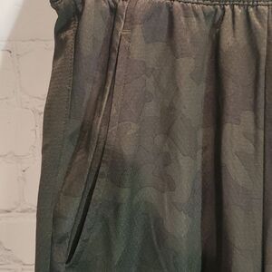 In excellent used condition no flaws. 2 front pockets with an elastic drawstring waist. Camo pattern