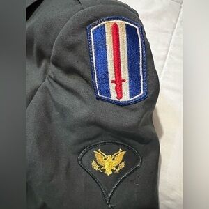 Men’s authentic army green jacket gold buttons embroidered patches 38L vintage authentic