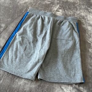 Grey, blue, and black shorts with side pockets and back pocket. Never worn.