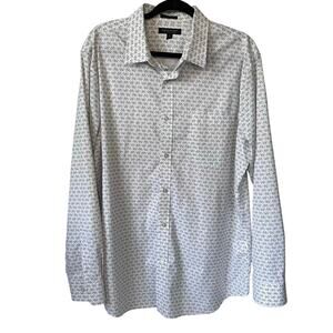 Mens banana republic slim flex fit button up white top w/bicycle print size XL
