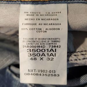 In excellent used condition no flaws. Medium wash heavyweight. Relaxed fit in a size 48 x 32.