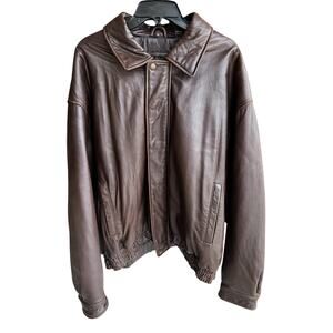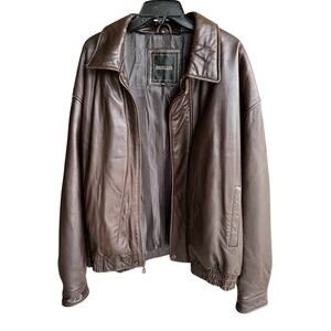 Men’s big & tall genuine leather butter soft chocolate brown bomber jacket sz 2X