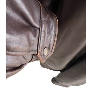 Light intentional distressing on seams cuffs and collar. Given to my husband for Christmas last year. Worn once. It was too big for him so we bought another of the exact jacket in a smaller size.