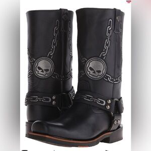Experience the rugged charm of Harley-Davidson with these black cowboy and western boots. Crafted from high-quality leather, they offer a sleek and polished finish perfect for any occasion. The classic design ensures both style and durability, making them a timeless addition to your footwear collection.
