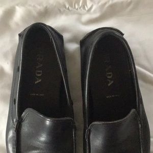 Men’s black leather Prada loafers. Excellent condition. Size labeled as 8, run large, more like 9 or 9 1/2
