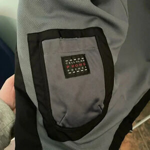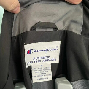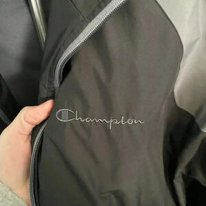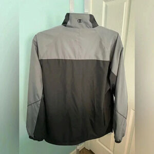 Men’s black and gray champion, windbreaker jacket, size MED zippers work bin11