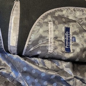 Men's black blazer size 2X with buttons and a polka dot Gray interior. It also has pockets inside